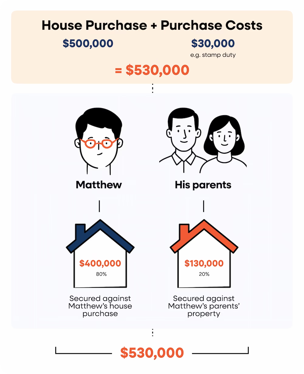 - The remaining $130,000 is set up as a separate loan secured against the guarantor’s property.